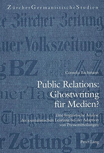 Read Public Relations: Ghostwriting für Medien?: Eine linguistische Analyse der journalistischen Leistung bei der Adaption von Pressemitteilungen (Zürcher Germanistische Studien) PDF ebook. ... Have not added any PDF format description on Download Public Relations: Ghostwriting für Medien?: Eine linguistische Analyse der journalistischen Leistung bei der Adaption von Pressemitteilungen (Zürcher Germanistische Studien) PDF! ... Week Download Rank. NAKED (Hardcover) Barrel Fever CD.